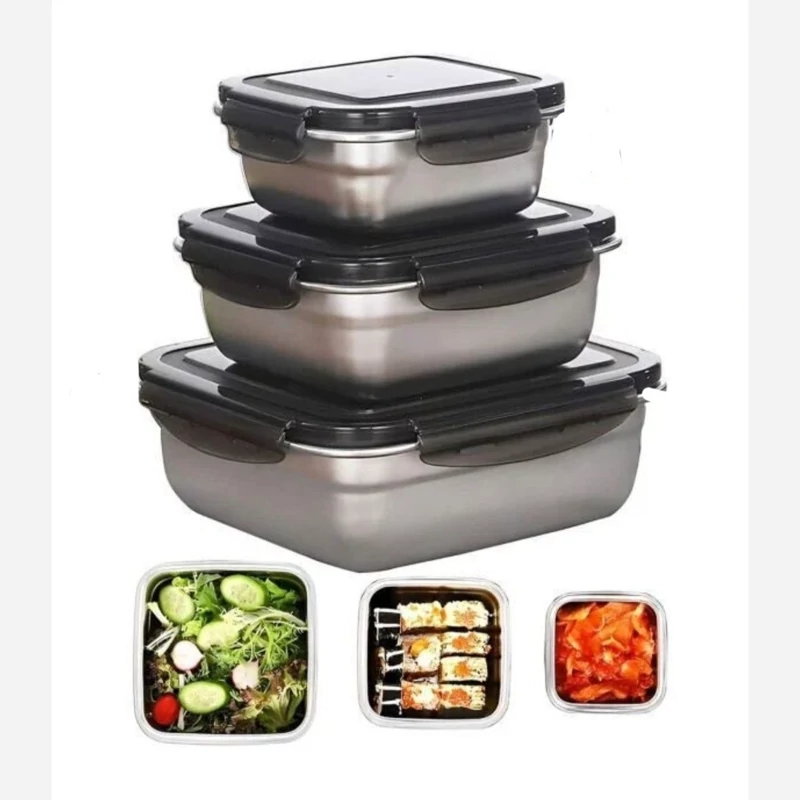 ظرف غذا استیل 3 تیکه گرد قفل دار یونیک
