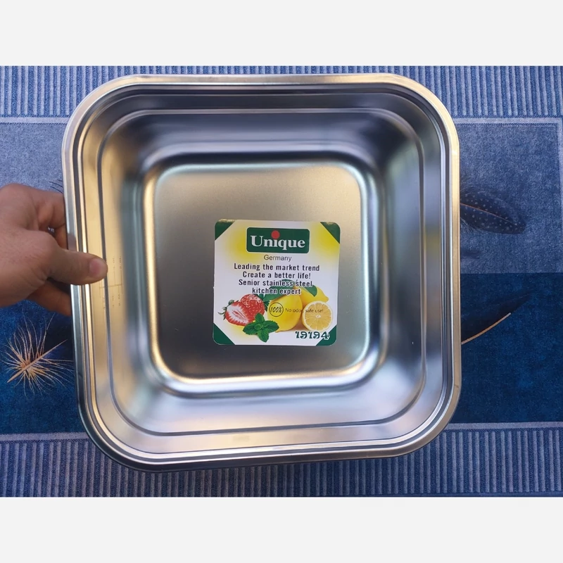 لگن استیل ۴ گوش مربع یونیک پلاس سایز 13 * 13
