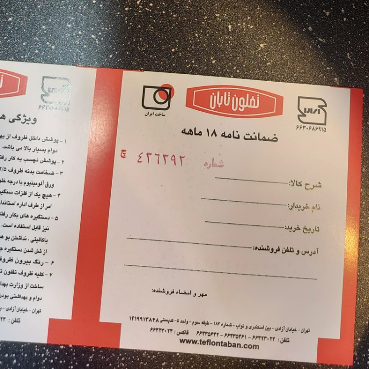 🔸️ ویژگی محصول : تولید شده از بهترین نوع گرانیت نچسب و ضد خش