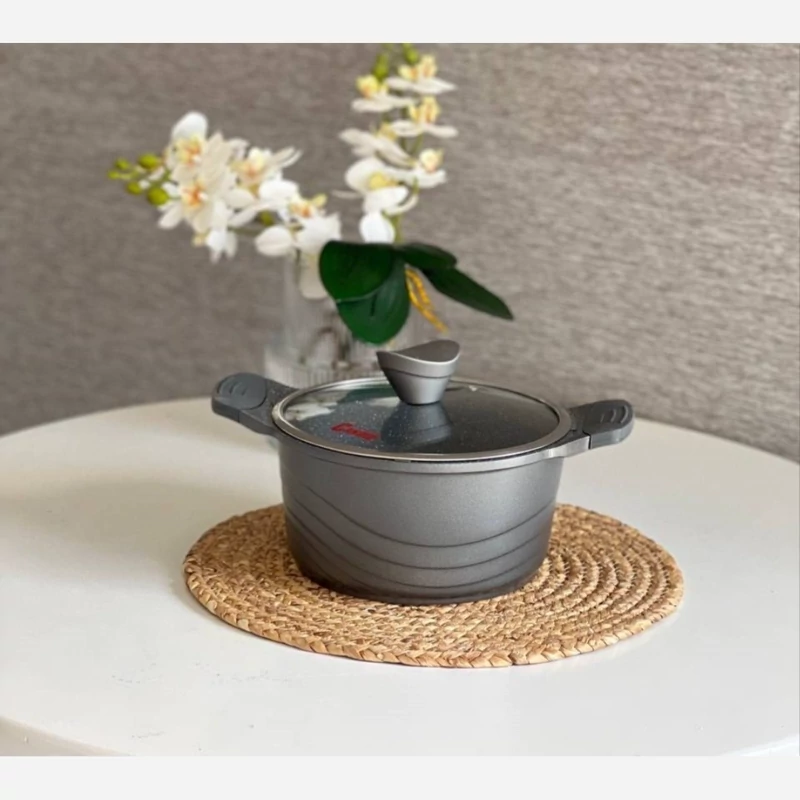 🔸️سایر توضیحات : درپوشها دارای سوپاپ برای خروج بخار، درپوش ها دارای رینگ فلزی و قپه باکالیت و دارای دستگیره سیلیکونی در دسته ها