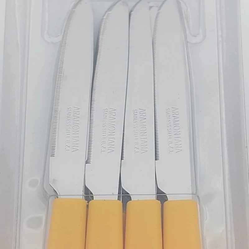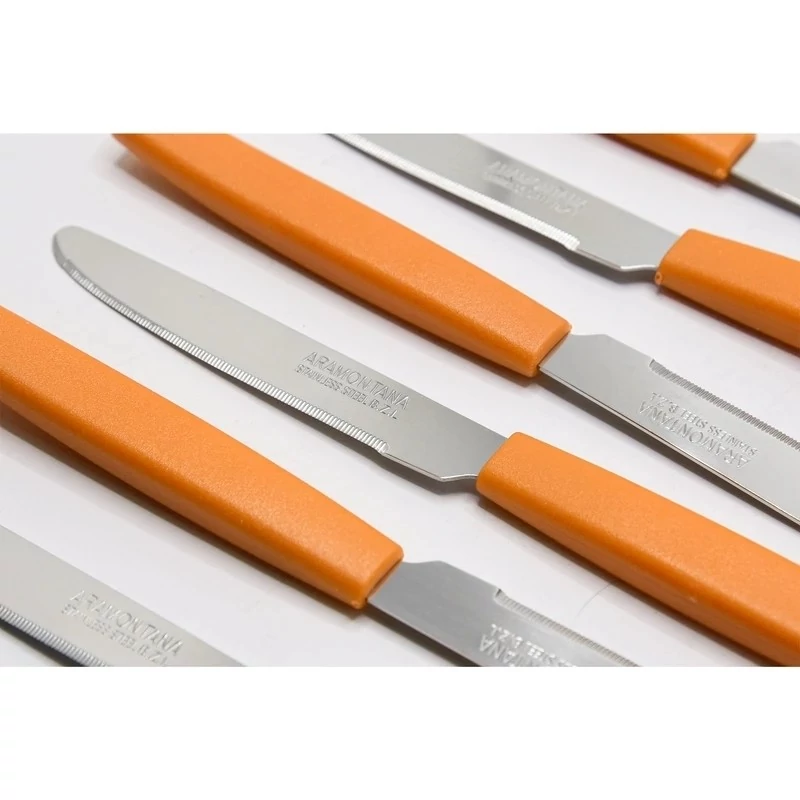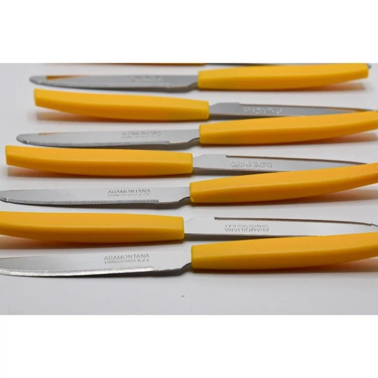 داخل بستهبندی سرویس کارد آرامونتانا 12 عدد کارد میوهخوری گنجانده شده است که برای پذیرایی از 12 نفر کافی است. کاردها دارای تیغهای لیزری استیل ضد زنگ و بسیار تیز هستند که هنگام جدا کردن پوست میوهها به اعمال فشار زیاد نیاز نداشته باشید و بهآسانی پوست انواع میوهها را جدا کنید. قسمتهای فلزی این سرویس که به صورت یک تکه است مقاومت و استحکام خوبی در برابر رطوبت دارند و دچار زنگزدگی نمیشوند. خشک کردن کاردها و چنگالها بعد از شستوشو، مانع ایجاد لک روی این قسمتها خواهد شد. روکشی که روی تیغه به عنوان دسته روی تمام اقلام این ست وجود دارد از جنس پلاستیک فشرده بادوام هستند.