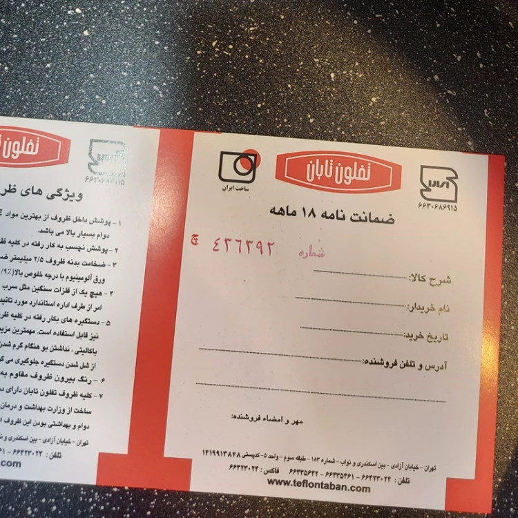🔸️ ویژگی محصول : تولید شده از بهترین نوع گرانیت نچسب و ضد خش