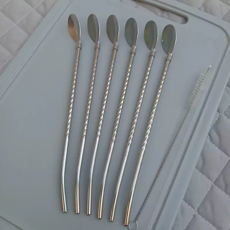نی شربت خوری کروم فرچه دار مدل 4577 موجب سهولت در نوشیدن شربت و بستنی شده به طوری که شما و میهمانان به راحتی می توانید بدون نیاز به قاشق و نی مجزا هر دو آنها را یکجا و با طراحی شیک و جذاب داشته باشید. این نی شربت ها دارای جنس استیل 18/10 آهنربا نگیر ضد زنگ در مدل مارپیچ طلایی با سایز 20 سانتی متر است که در بسته های 6 عددی بهمراه فرچه تمیز کننده روانه بازار شده است