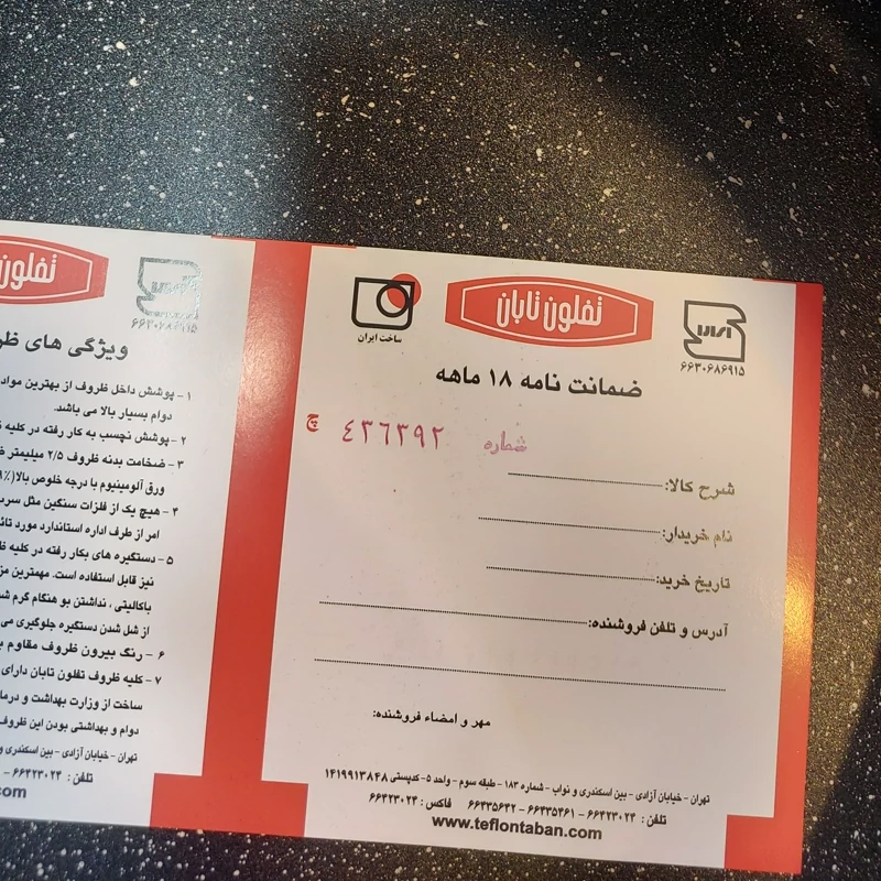 🔸️ ویژگی محصول : تولید شده از بهترین نوع گرانیت نچسب و ضد خش