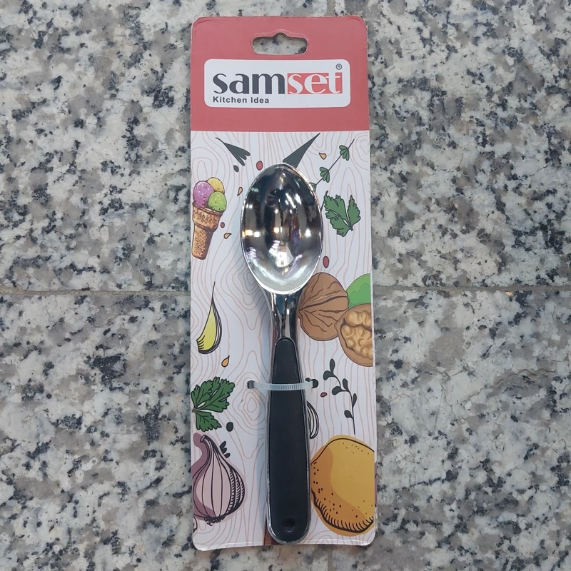 شما هم از جمله افرادی باشید که ترجیح میدهید برای پذیرایی از میهمانان خود، سرو بستنی را انتخاب کنید. برای کمک به سرو هرچه تمامتر، راحتتر و زیباتر این خوردنی خوشمزه، استفاده از اسکوپ لازم است. این اسکوپ بستنی به شما کمک می کنید که به هنگام سرو بستنی یا هندوانه در ظروف مورد نظر بتوانید اسکوپهایی کاملا یک شکل و یک اندازه و با ظاهری چشمنواز داشته باشید. جنس این اسکوپ از جنس فلزی بوده و طول کلی آن 17 سانتیمتر با وزن 77 گرم است. گفتنی است که نگران نباشید که بستنی به بدنهی این محصول بچسبد. این اسکوپ مانند یک قاشق توپی شکل است .