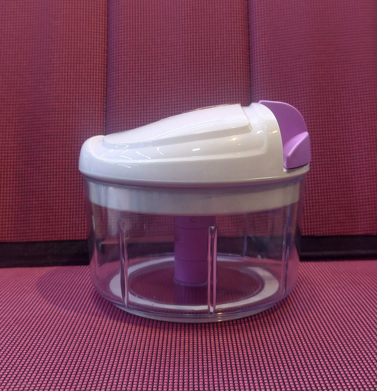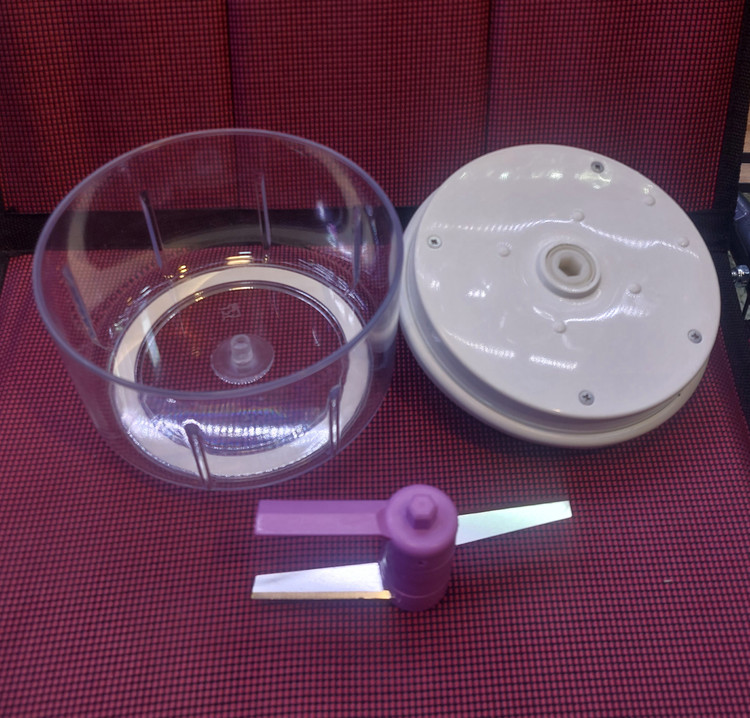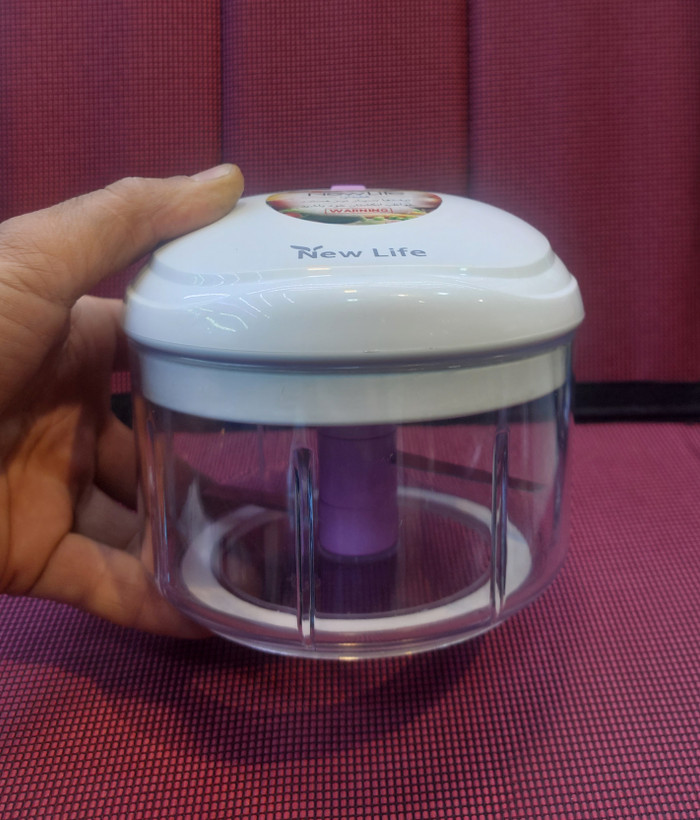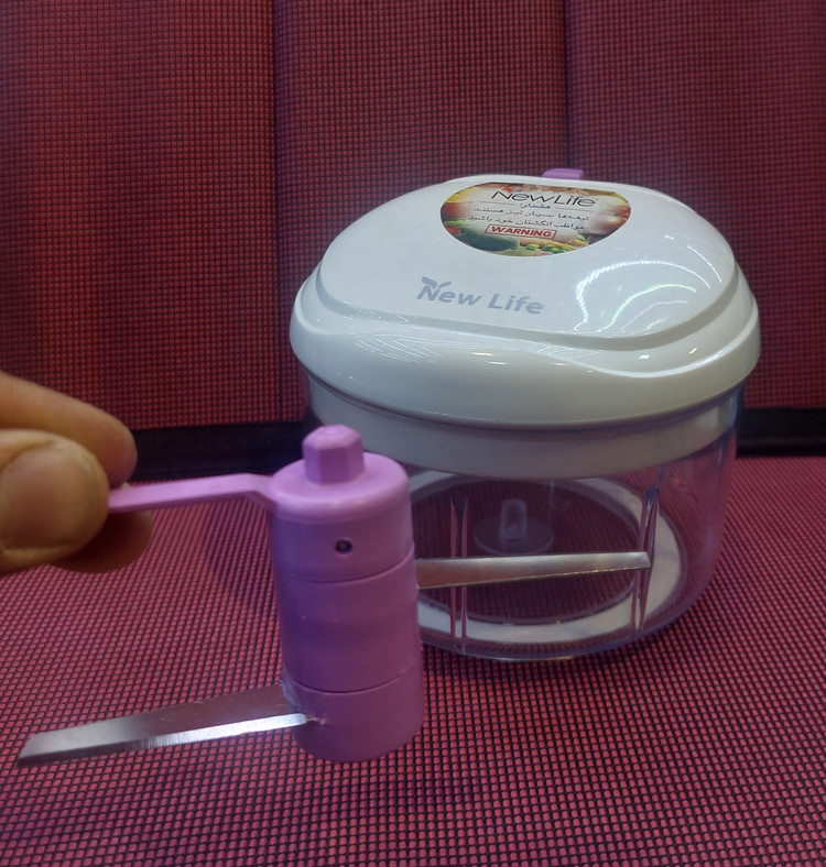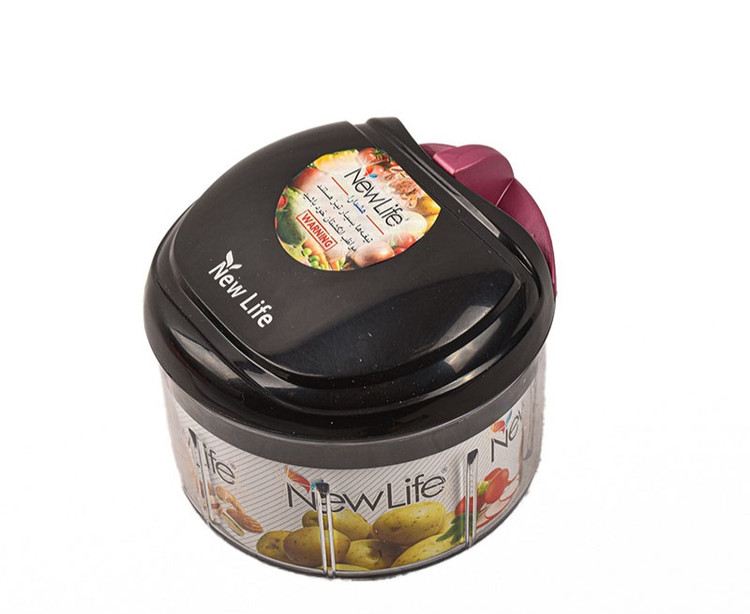 خرد کن دستی مدل 984، محصولی جدید از برند نیولایف جهت خرد کردن راحت و آسان مواد غذایی از جمله انواع سبزیجات و صیفی جات با چند بار کشش دستگیره می باشد. این محصول کاملا ایرانی بوده و از بهترین مواد و متریال جهت ساخت آن استفاده شده است خردکن دستی نیولایف دارای یک حلقه پلاستیکی در زیر ظرف می باشد که از سُر خوردن ظرف بر روی سطوح جلوگیری میکند و همچنین دارای دو تیغه تیز استیل ضد زنگ جهت خرد کردن هرچه راحت تر و سریعتر مواد غذایی می باشد. جنس بدنه و ظرف از پلاستیک می باشد که دارای خاصیت عدم رنگ پذیری می باشد،همچنین تیغهها را فقط با آب گرم بشویید و هرگز درب محفظه را با آب نشویید و تنها با یک دستمال مرطوب آن را تمیز کنید،ظرف نیم لیتری و تیغهها قابل شست و شو در ماشین ظرف شویی میباشند