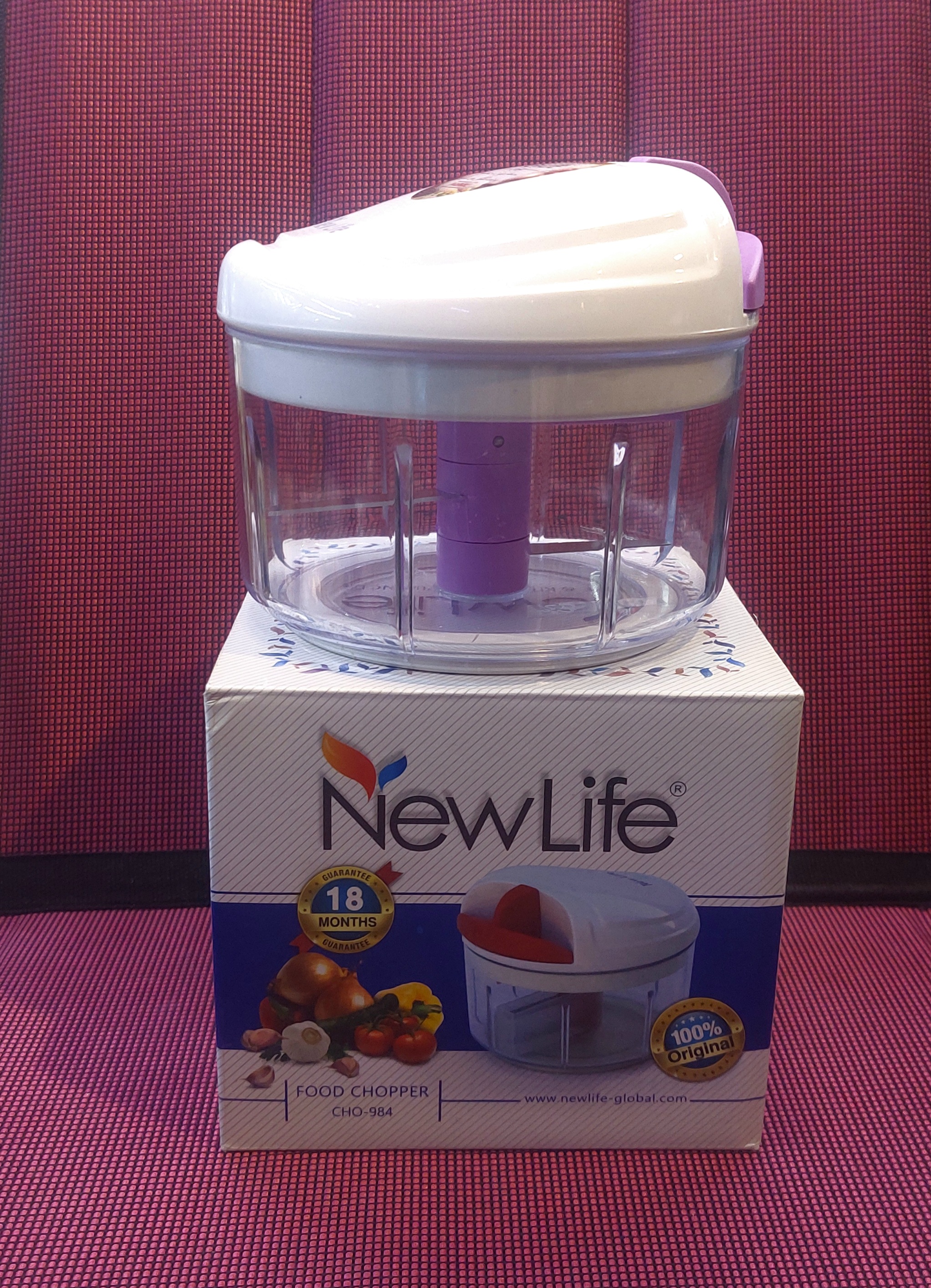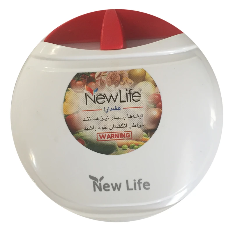 خرد کن دستی مدل 984، محصولی جدید از برند نیولایف جهت خرد کردن راحت و آسان مواد غذایی از جمله انواع سبزیجات و صیفی جات با چند بار کشش دستگیره می باشد. این محصول کاملا ایرانی بوده و از بهترین مواد و متریال جهت ساخت آن استفاده شده است خردکن دستی نیولایف دارای یک حلقه پلاستیکی در زیر ظرف می باشد که از سُر خوردن ظرف بر روی سطوح جلوگیری میکند و همچنین دارای دو تیغه تیز استیل ضد زنگ جهت خرد کردن هرچه راحت تر و سریعتر مواد غذایی می باشد. جنس بدنه و ظرف از پلاستیک می باشد که دارای خاصیت عدم رنگ پذیری می باشد،همچنین تیغهها را فقط با آب گرم بشویید و هرگز درب محفظه را با آب نشویید و تنها با یک دستمال مرطوب آن را تمیز کنید،ظرف نیم لیتری و تیغهها قابل شست و شو در ماشین ظرف شویی میباشند
