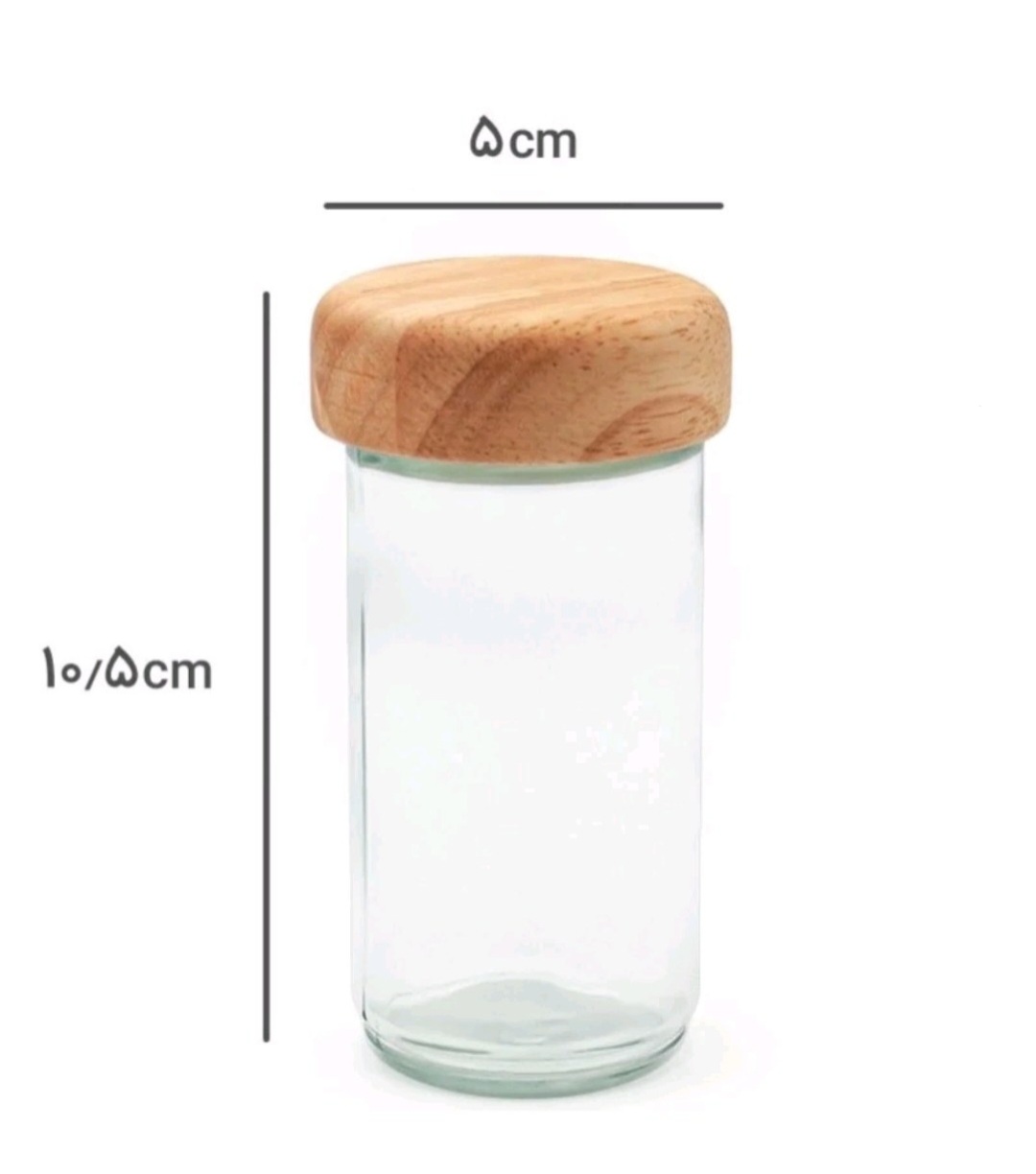 8 ظرف شیشه ای و درب چوبی به همراه یک استند گردان از جنس رابروود