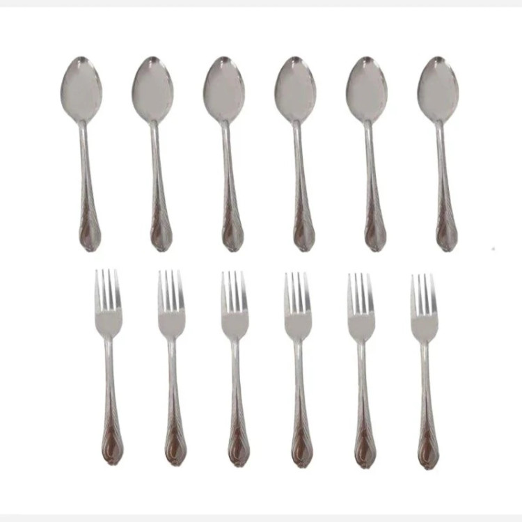 سرویس قاشق و چنگال 12 پارچه مدل دلی براق شامل 6 عدد قاشق غذاخوری و 6 عدد چنگال غذاخوری است.طراحی ساده و زیبای مدل ماینز باعث شده یکی از پرطرفدارترین مدل های قاشق و چنگال باشد.محصول فوق ساخته شده از استیل آهنربا نگیر، ضد زنگ است.