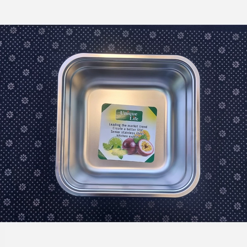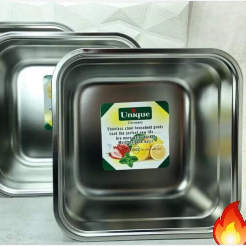 🔸️ جنس : استیل 🔸️ سایز : 26 🔸️ برند : یونیک لایف 🔸️ مدل : 4گوش - مربع 🔸️ ابعاد : 24/5 * 24/5 🔸️ ساخت کشور : چین 🔸️ وزن : 360 گرم 🔸️ ارتفاع : 9/5 سانتی متر 🔸️ مناسب : ابکش کردن-خیس کردن و....