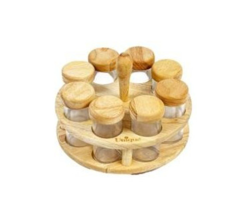 سرویس ست جا ادویه جات ۸ تایی گرد چوبی چرخشی نیوهوم کد ۱۴۱۰